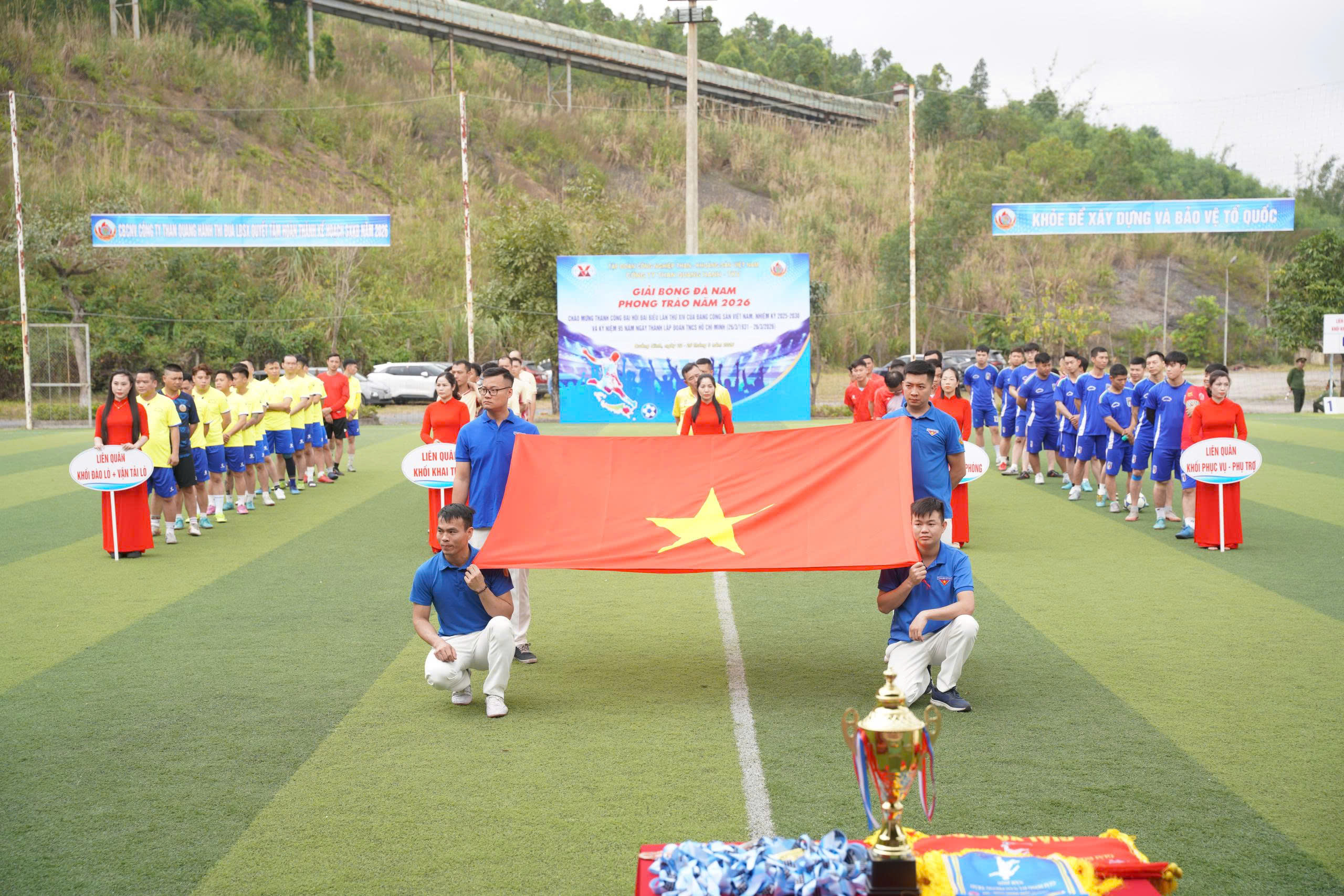 Chiều ngày 22/3/2026, tại sân bóng nhân tạo Km9, Công ty Than Quang Hanh – TKV đã long trọng tổ chức Lễ khai mạc Giải bóng đá nam phong trào năm 2026. Đây là hoạt động thiết thực chào mừng thành công Đại hội đại biểu toàn quốc lần thứ XIV của Đảng, nhiệm kỳ 2025–2030; đồng thời hướng tới kỷ niệm 95 năm Ngày thành lập Đoàn TNCS Hồ Chí Minh (26/3/1931 – 26/3/2026).