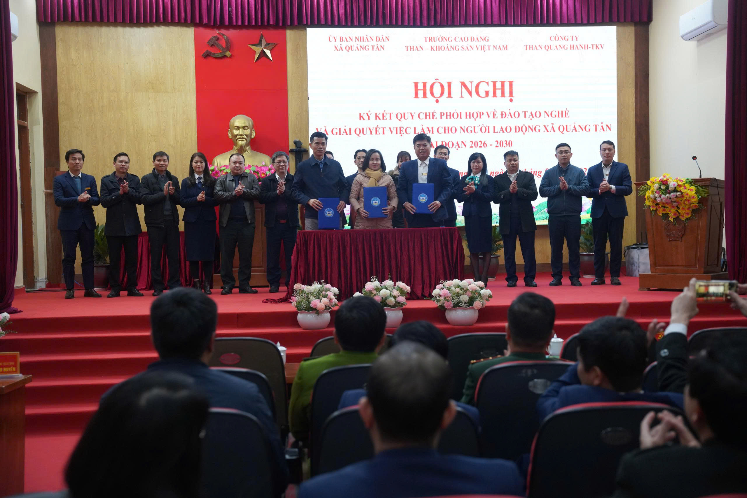 • Hình ảnh 9: Lễ ký kết quy chế phối hợp tuyển sinh – Đào tạo nghề giai đoạn 2025 – 2030 giữa Trường cao ddawngrThan, KSVN; Công ty than Quang hanh -TKV với Lãnh đạo Xã Quảng Tân