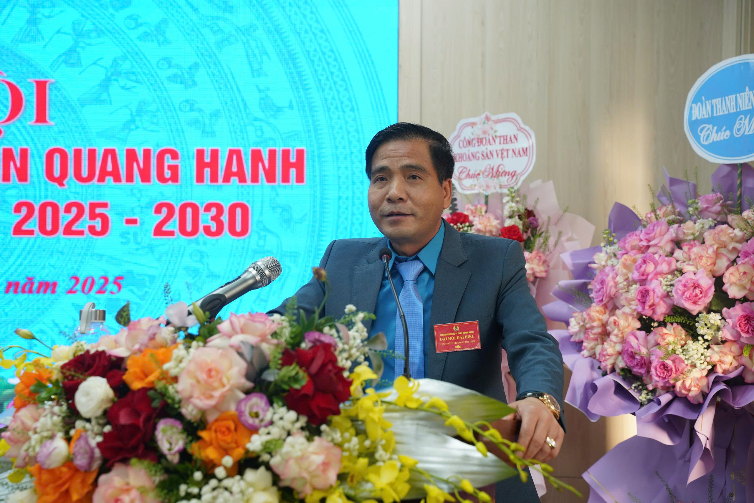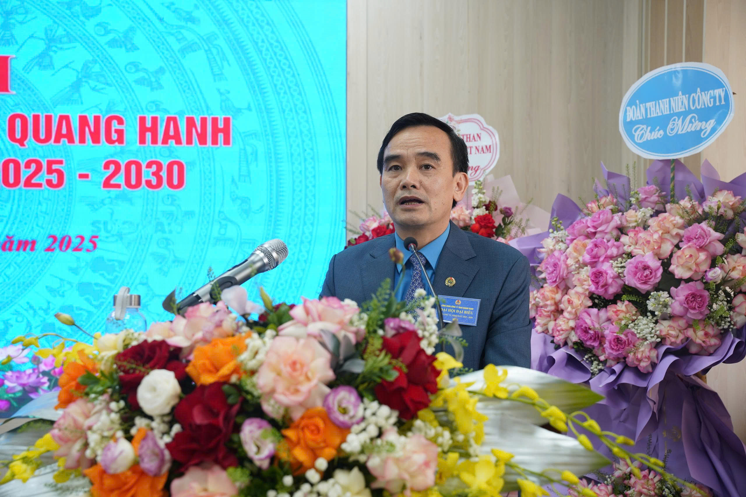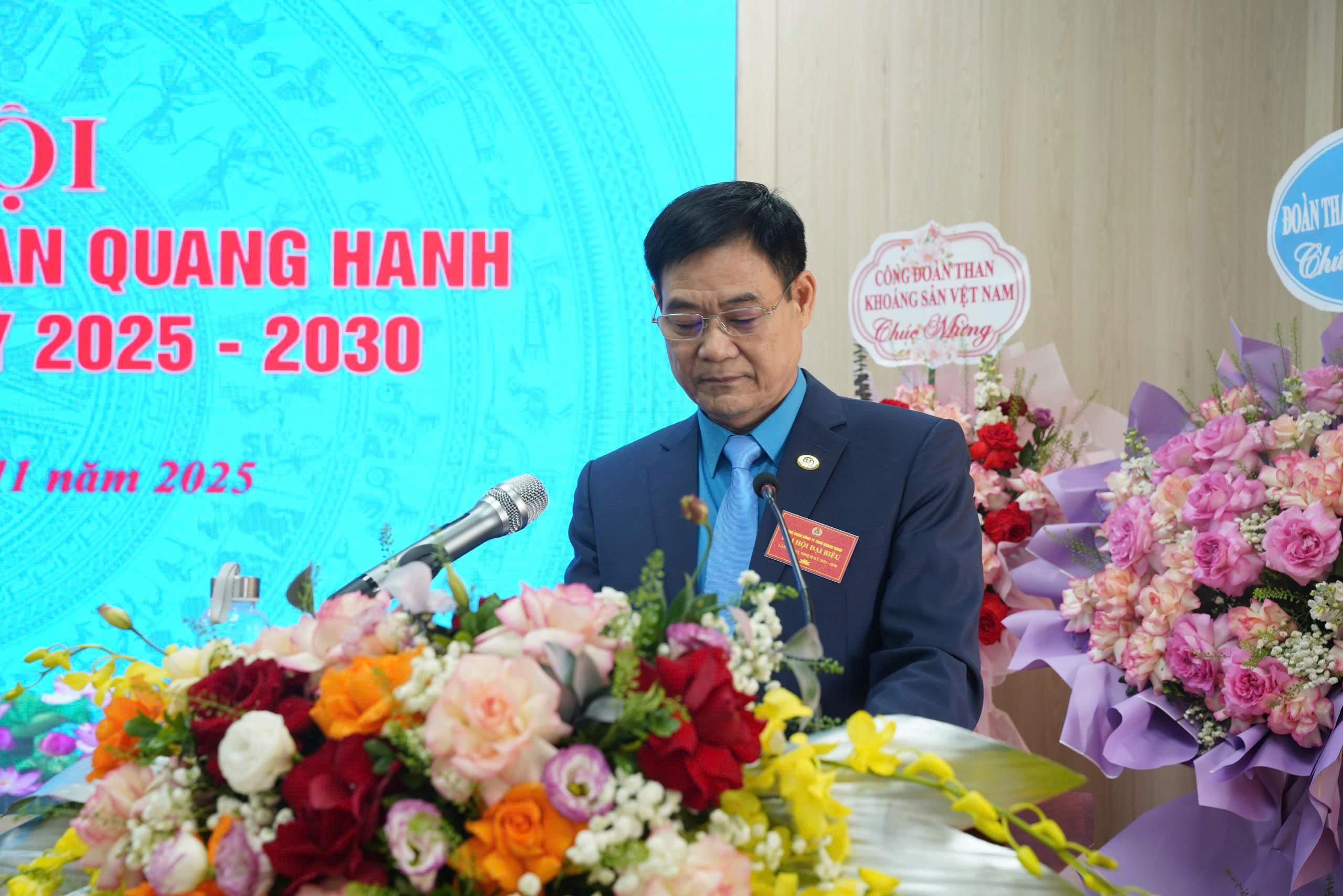 - Hình ảnh 8: Đ.c Lê Thanh Xuân – Ủy viên Đoàn Chủ tịch Tổng LĐLĐ Việt Nam, Chủ tịch Công đoàn TKV phát biểu ghi nhận và chúc mừng những kết quả nổi bật của Công đoàn Than Quang Hanh trong giai đoạn 2023–2025, chỉ đạo thực hiện tốt các mục tiêu, hoạt động trong nhiệm kỳ mới( khóa VI, nhiệm kỳ 2025-2030)