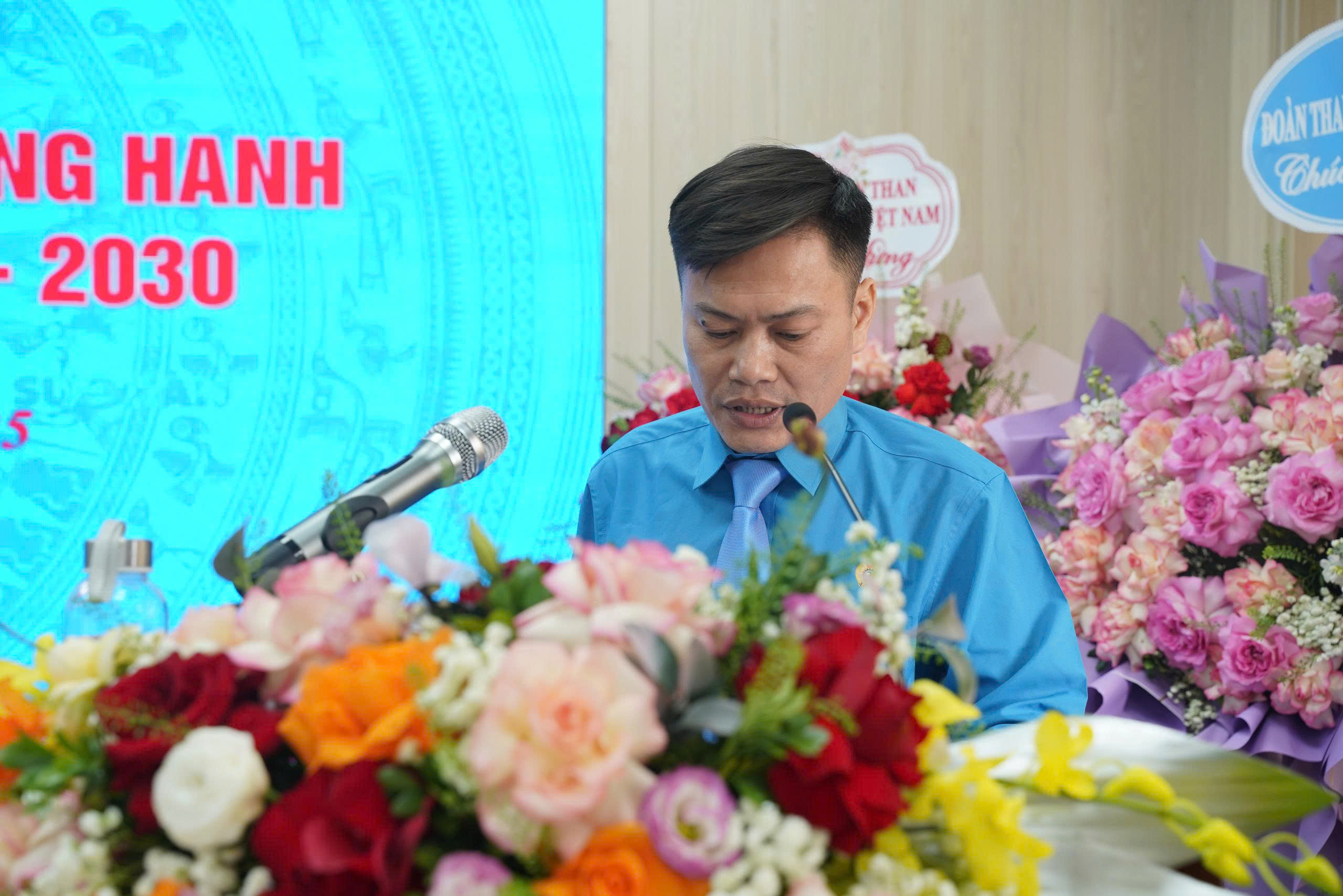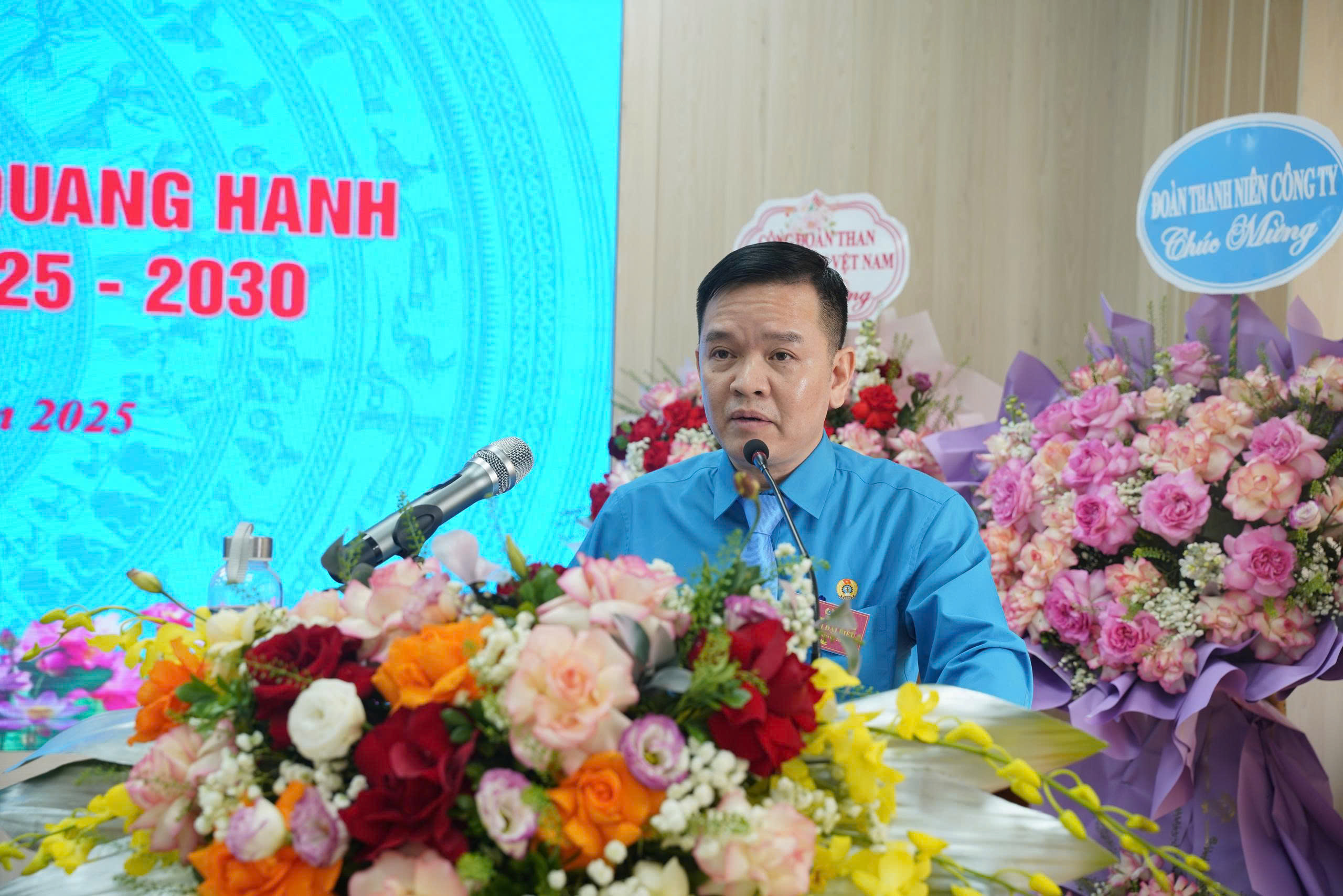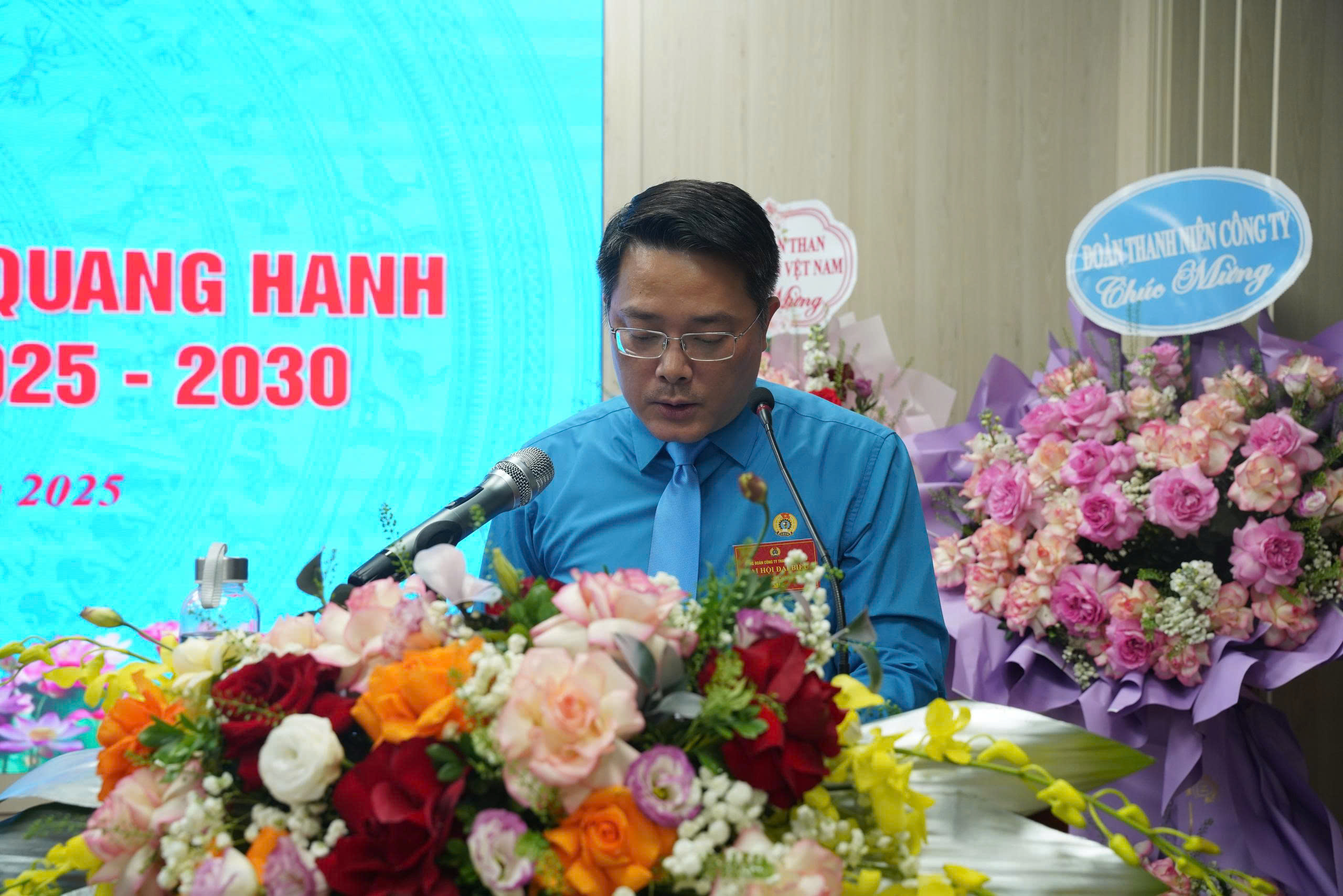 - Hình ảnh 8: Đ.c Lê Thanh Xuân – Ủy viên Đoàn Chủ tịch Tổng LĐLĐ Việt Nam, Chủ tịch Công đoàn TKV phát biểu ghi nhận và chúc mừng những kết quả nổi bật của Công đoàn Than Quang Hanh trong giai đoạn 2023–2025, chỉ đạo thực hiện tốt các mục tiêu, hoạt động trong nhiệm kỳ mới( khóa VI, nhiệm kỳ 2025-2030)