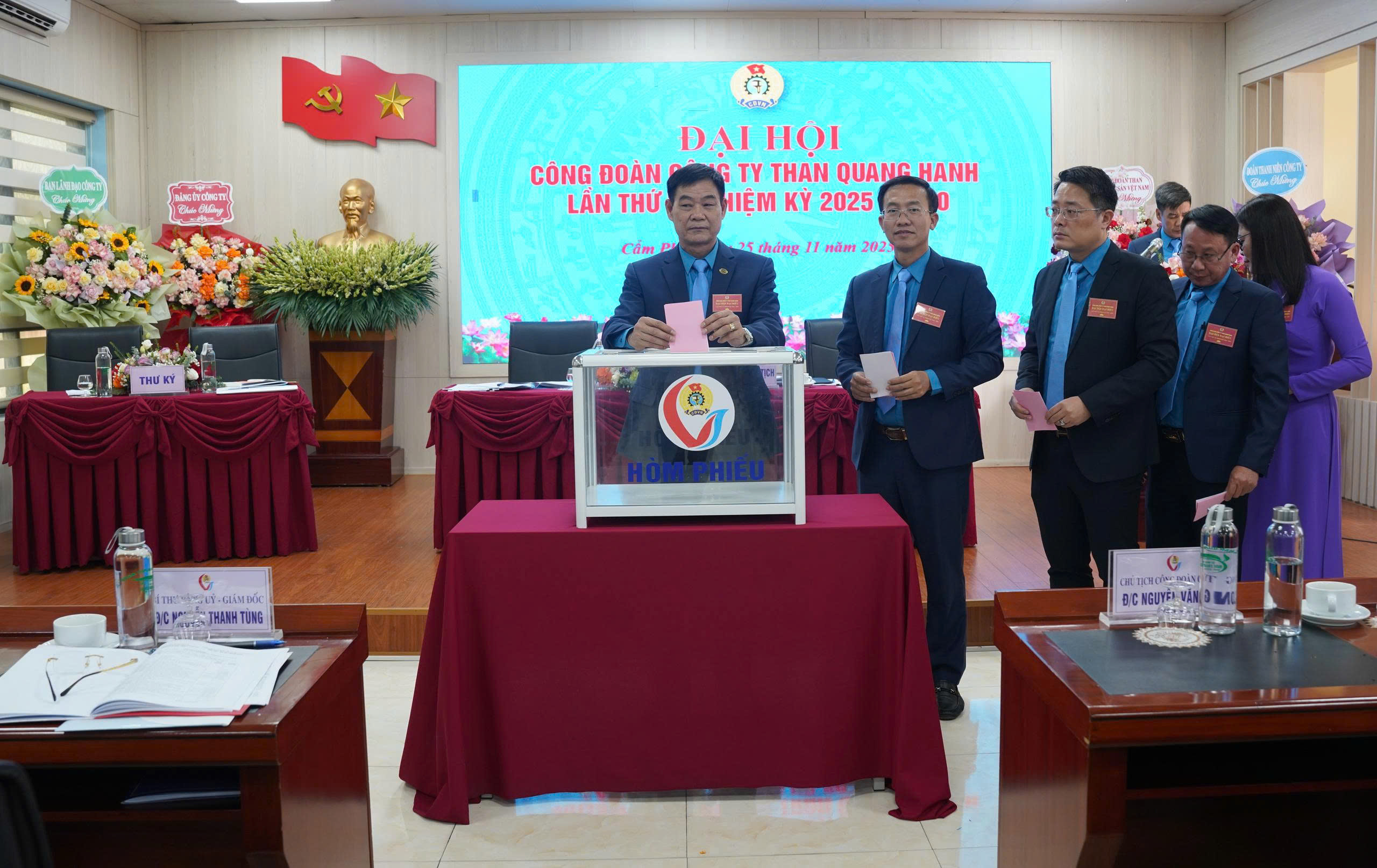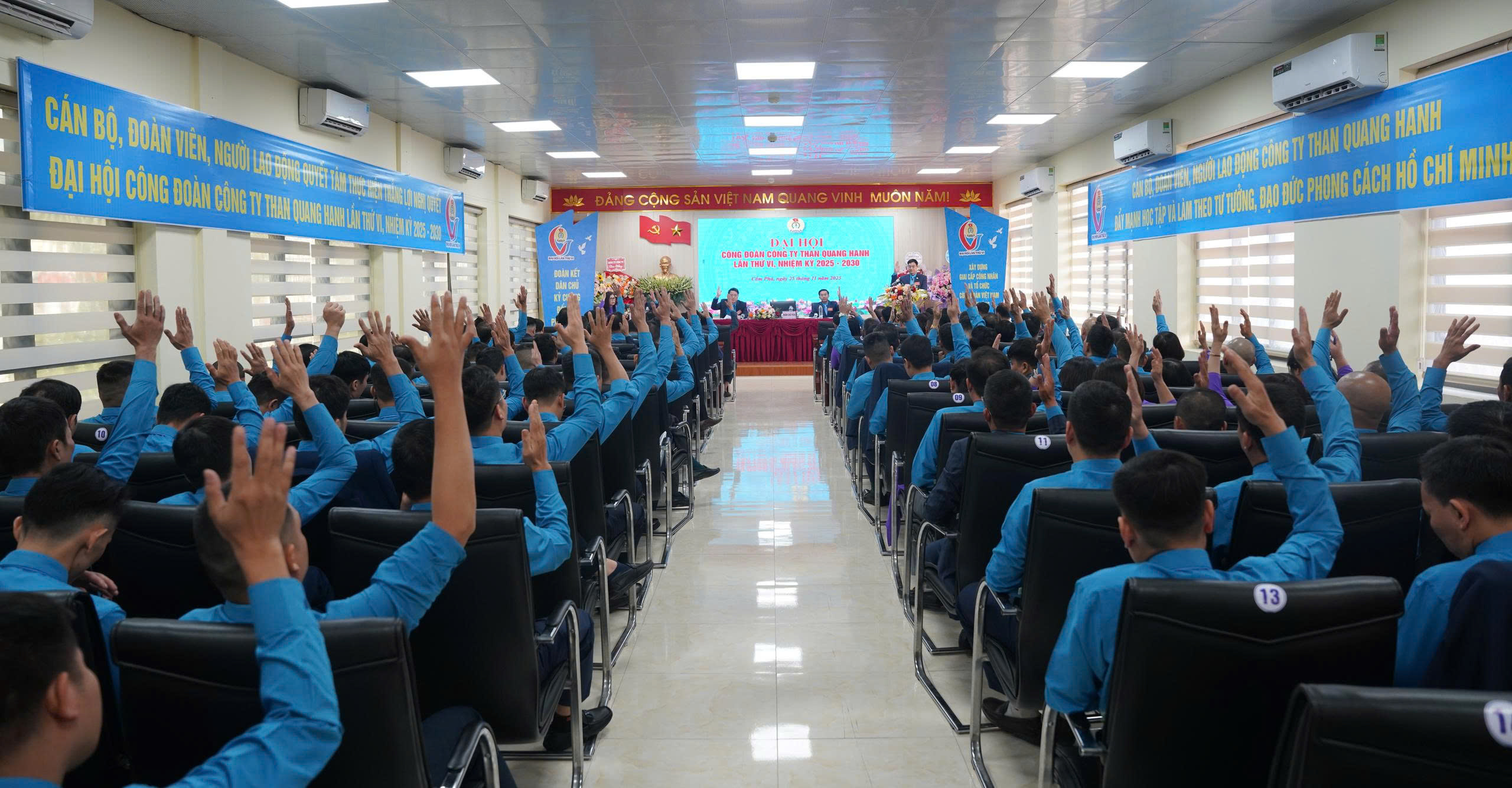 - Hình ảnh 13,14: Đại hội tiến hành bầu cử( Bầu BCH Công đoàn khóa VI, nhiệm kỳ 2025-2030 và Bầu đoàn đại biểu dự Đại hội Công đoàn Than, KSVN khóa VII, nhiệm kỳ 2025-2030.