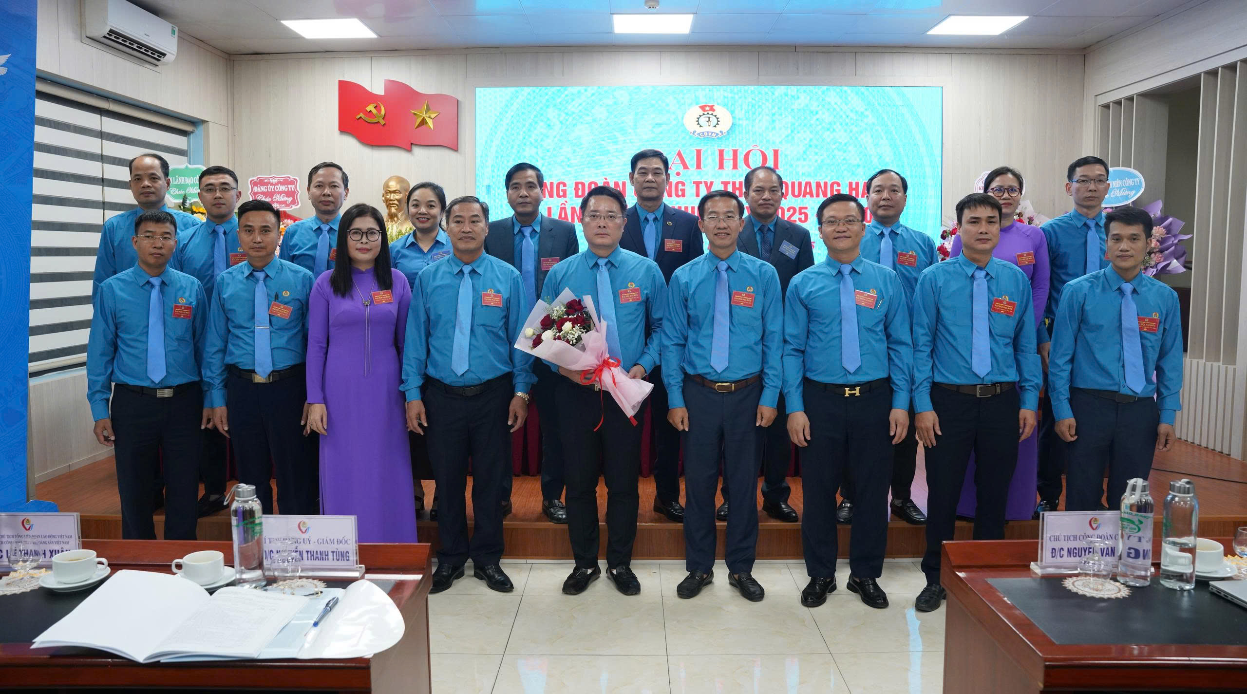 Các đ.c lãnh đạo công ty: Bí thư đảng ủy – Giám đốc Công ty; Chủ tịch Công đoàn; Phó bí thư Đảng ủy; Bí thư Đoàn TN; Chủ tịch Hội CCB; Các đ.c PGĐ Công ty; Kế toán trưởng; các đ.c trong BCH công đoàn công ty cùng toàn thể 122 đ.c đại biểu đại diện cho gần 3000 cán bộ, đoàn viên, CNVCLĐ các đơn vị trong Công ty.