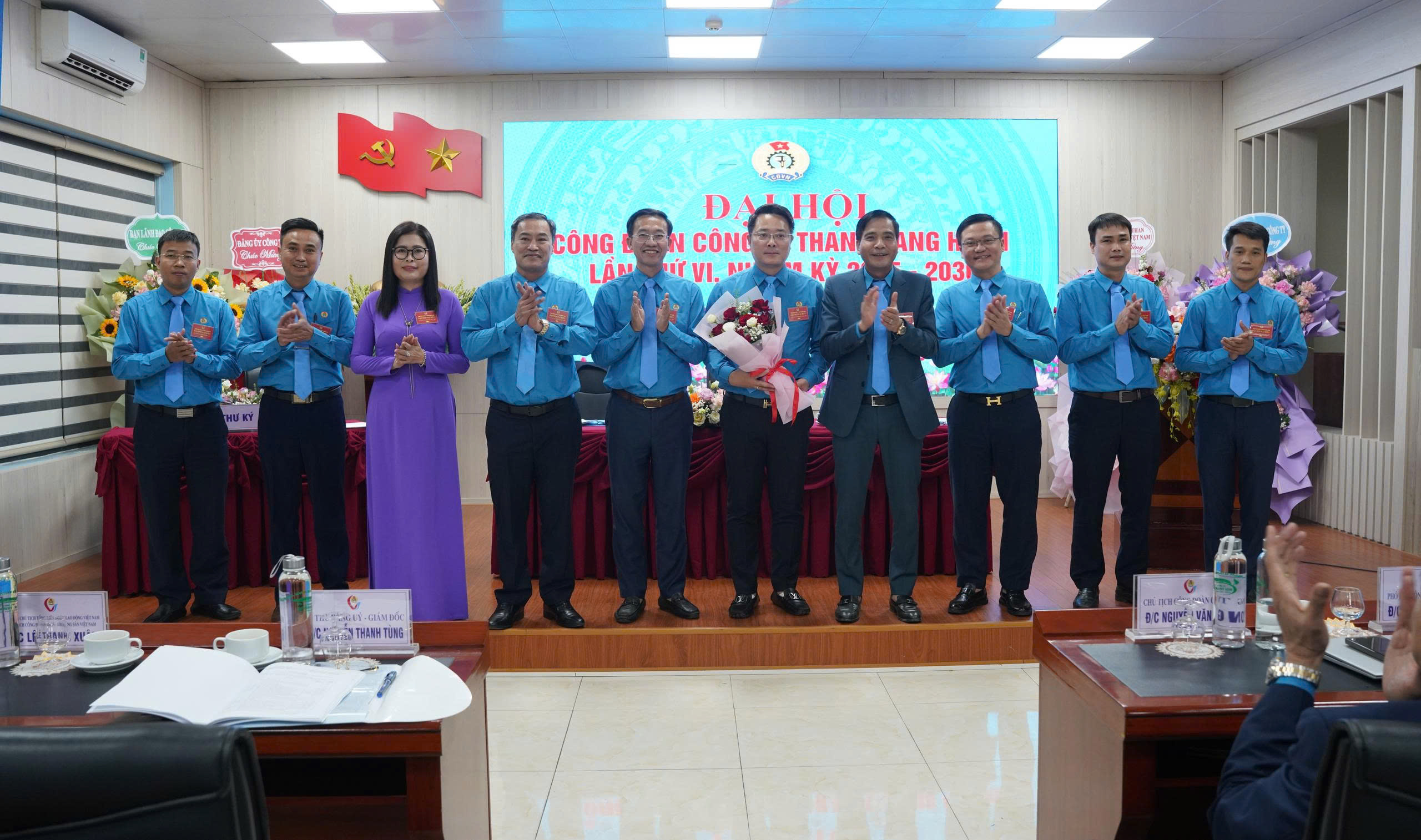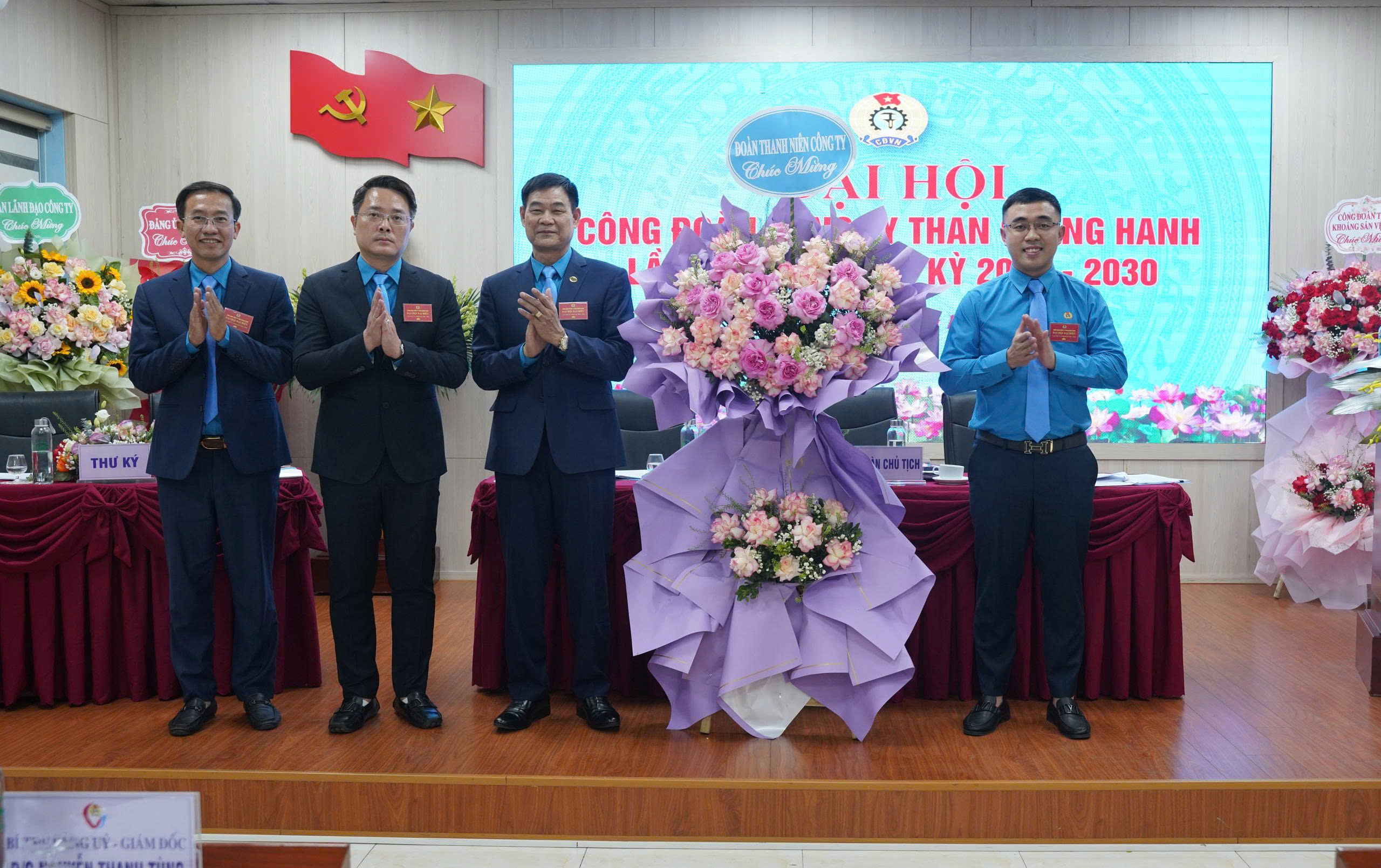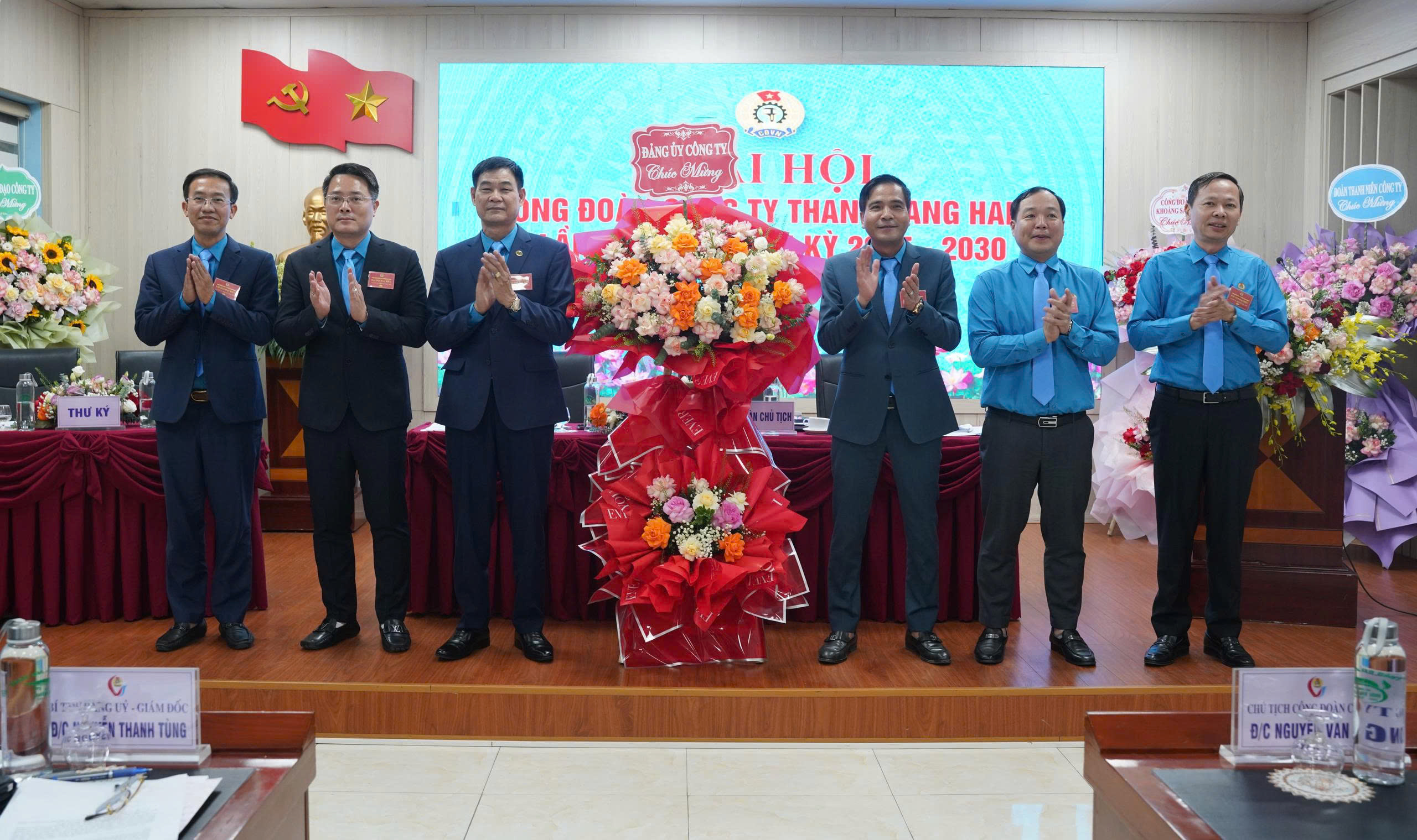 - Hình ảnh 5,6,7: Đảng ủy Công ty; ban lãnh đạo; Đoàn Thanh niên Công ty tặng hoa chúc mừng Đại hội