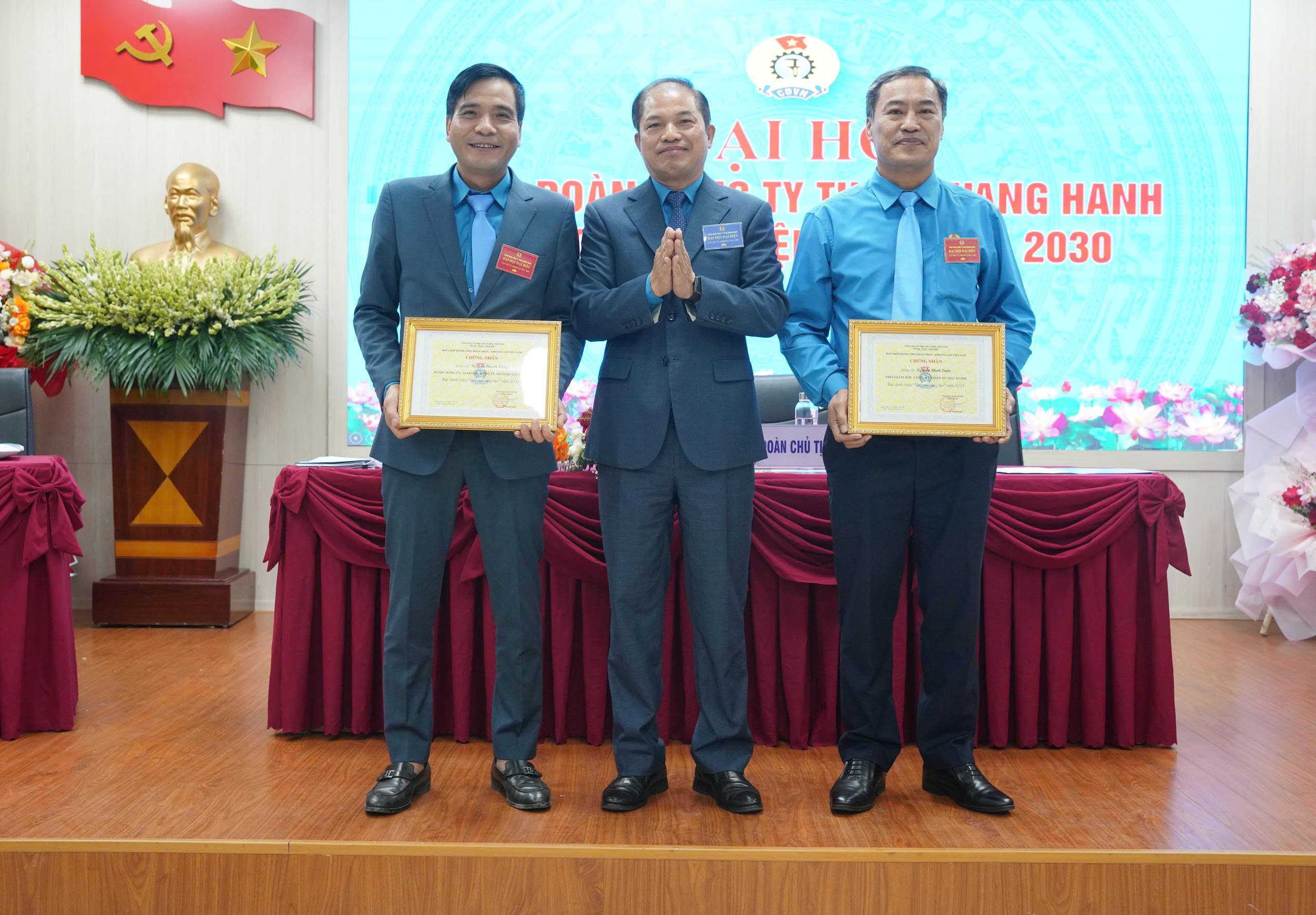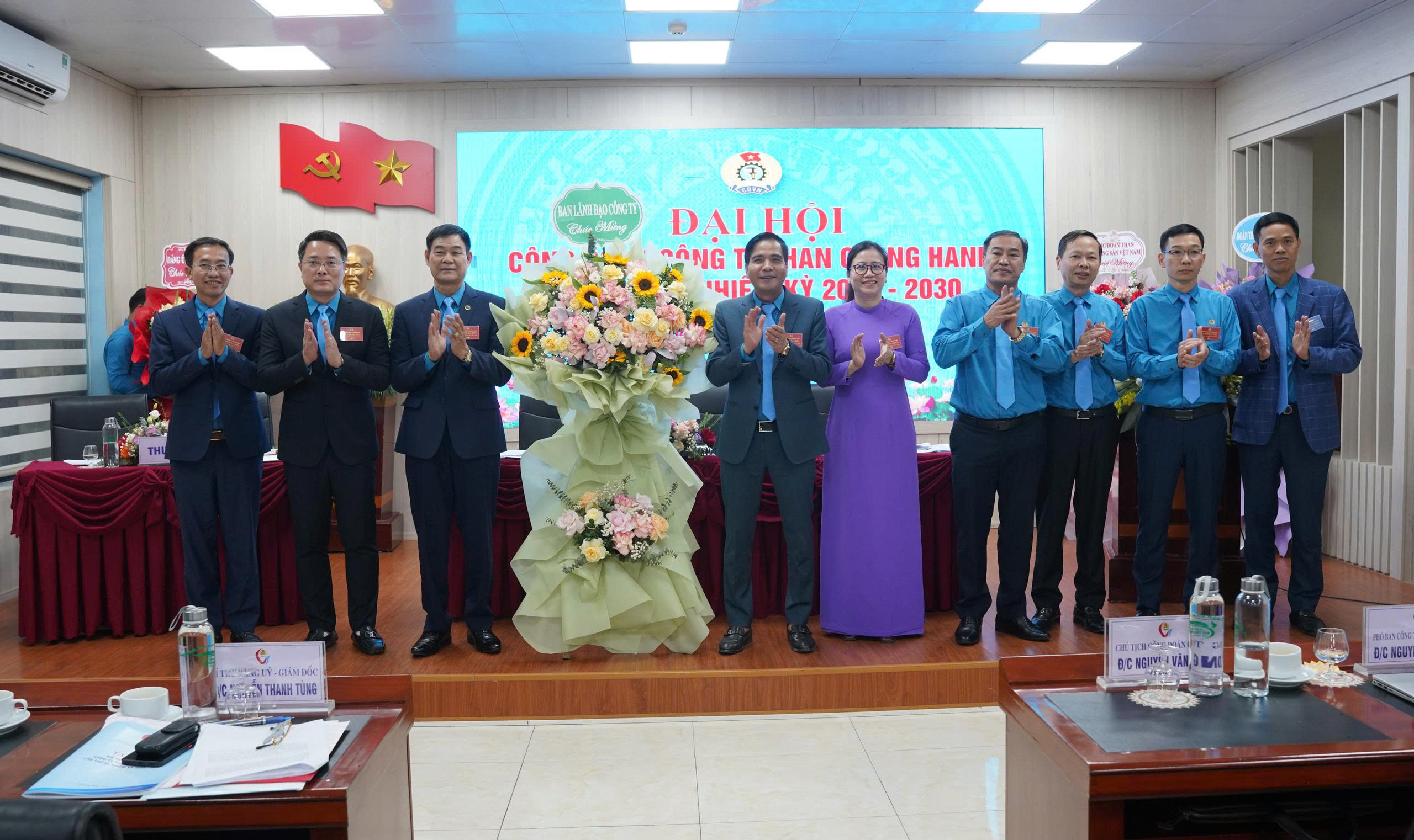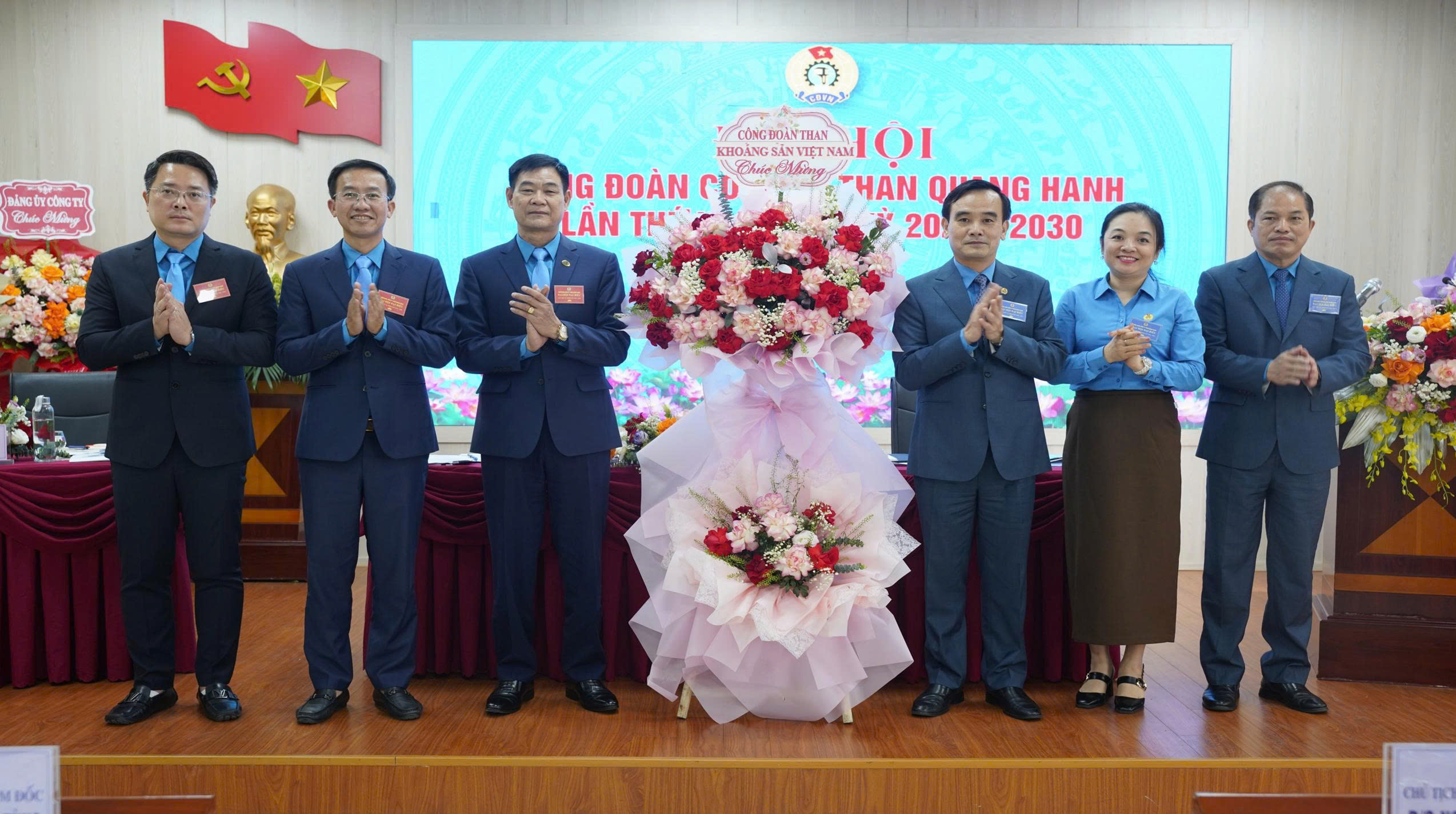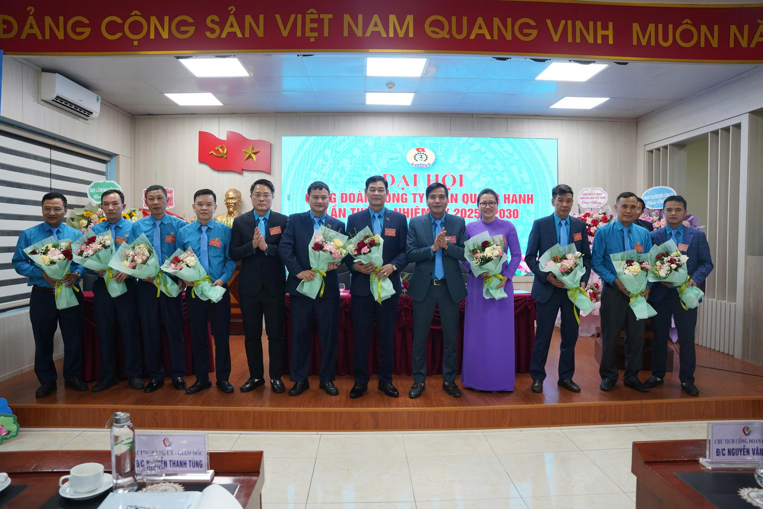 - Hình ảnh 5,6,7: Đảng ủy Công ty; ban lãnh đạo; Đoàn Thanh niên Công ty tặng hoa chúc mừng Đại hội