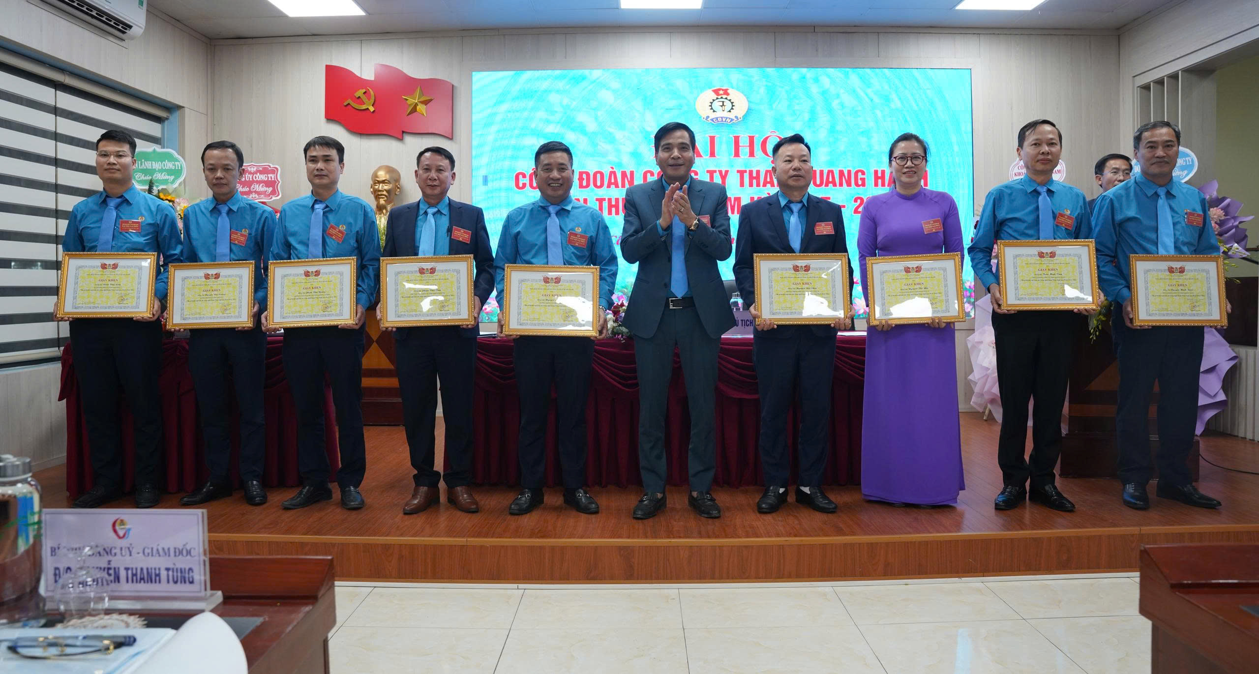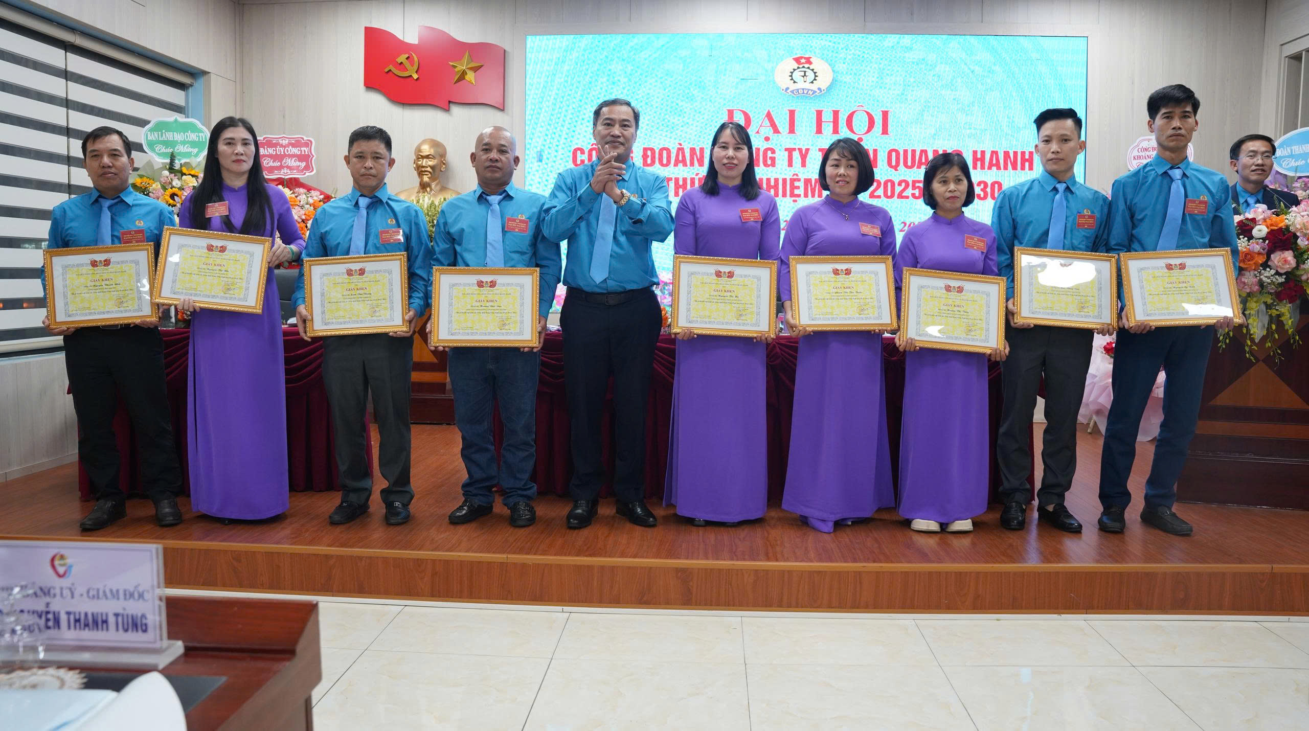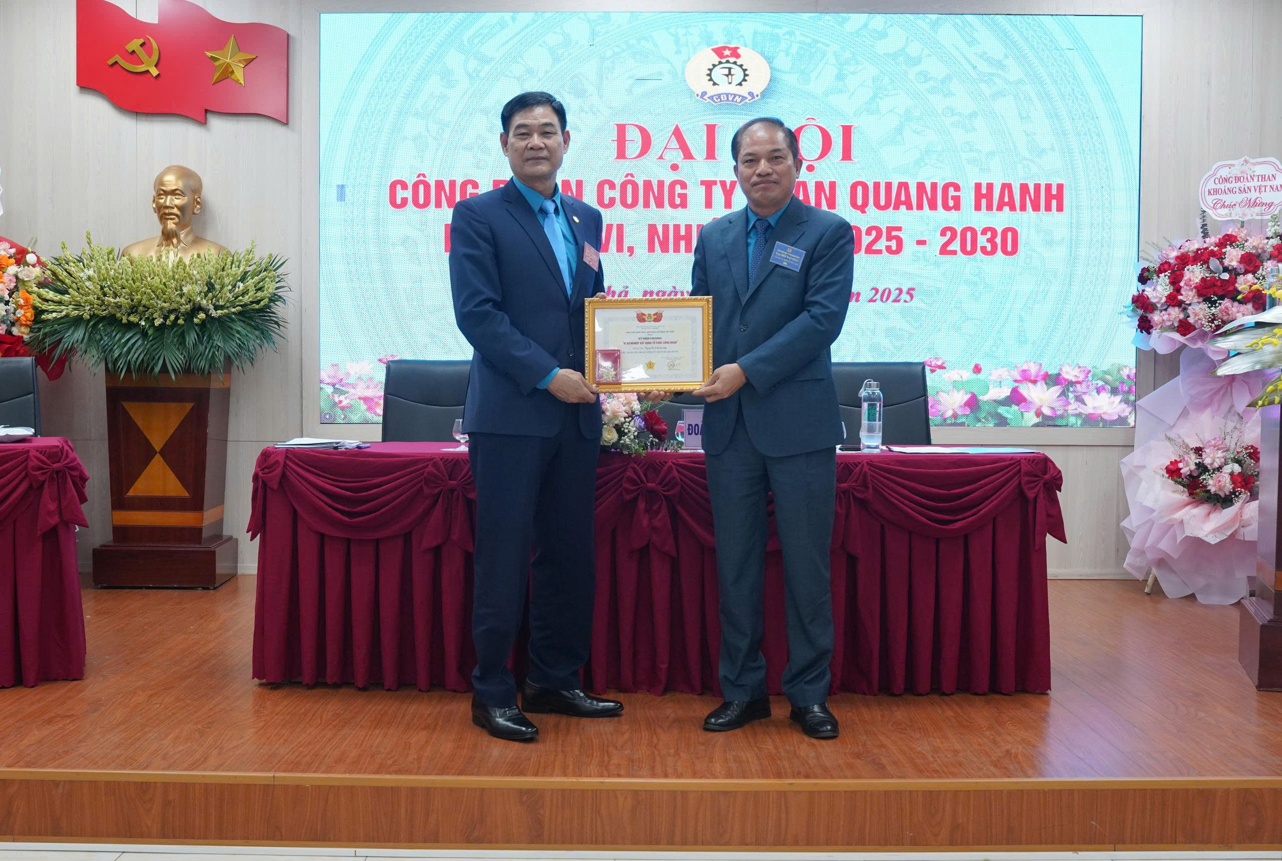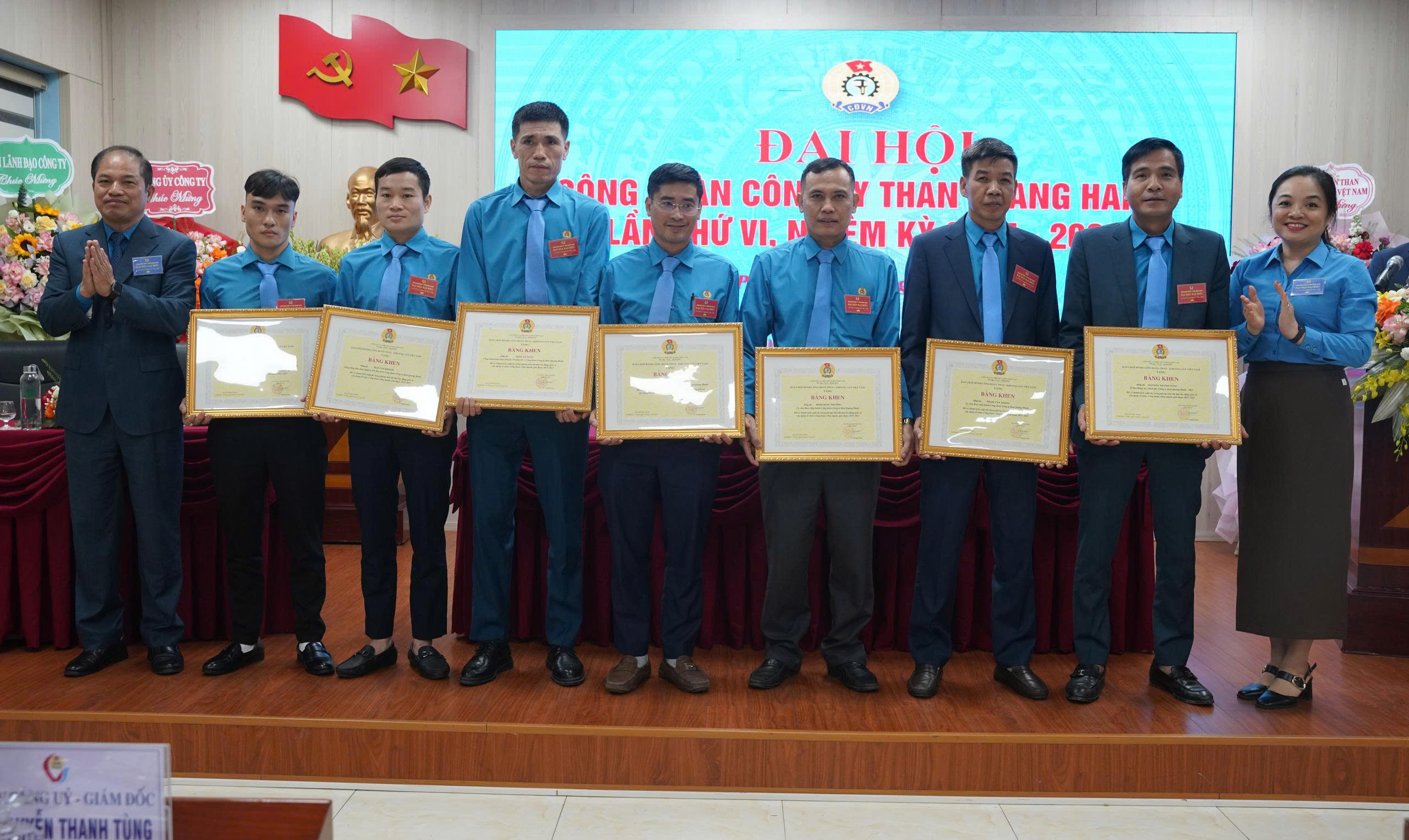 Nhân dịp này, Đại hội cũng đã tổ chức trao tặng Kỷ niệm chương của Tổng LĐLĐ Việt Nam cho đ/c Nguyễn Văn Long – Chủ tịch Công đoàn Công ty, trao tặng Danh hiệu thợ mỏ sáng tạo cho 02 đồng chí là đ/c Nguyễn Thanh Tùng – Bí thư Đảng ủy, Giám đốc Công ty và đ/c Nguyễn Minh Tuân – UV BTV Công đoàn, Phó Giám đốc Công ty; tặng Bằng khen của Công đoàn Than – Khoáng sản Việt Nam cho 08 cá nhân; Khen thưởng 06 tập thể và 31 cá nhân vì đã có thành tích xuất sắc trong phong trào CNVCLĐ và hoạt động Công đoàn giai đoạn 2023-2025. Cũng trong khuôn khổ chương trình, Đại hội tặng hoa chúc mừng và chia tay các đồng chí UVBCH khóa V không tái cử vào Ban Chấp hành khóa VI ./.