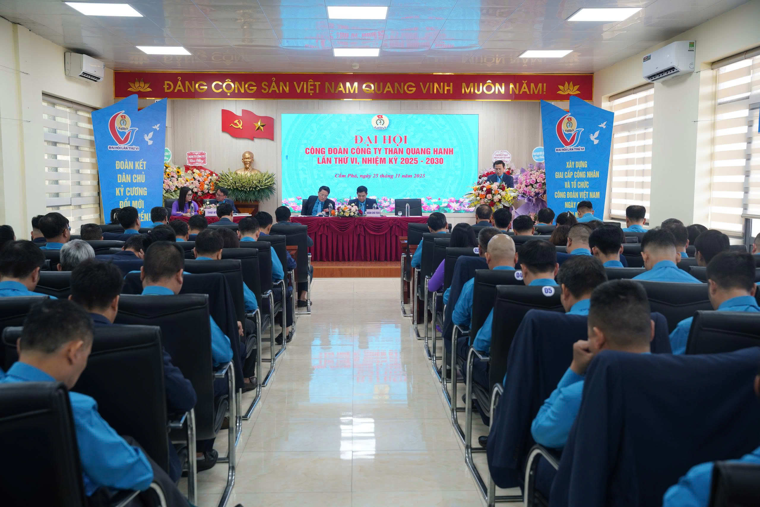 Chiều ngày 25/11/2025, tại Hội trường tầng 4 – Văn phòng Công ty, Công đoàn Công ty Than Quang Hanh đã long trọng tổ chức Đại hội Công đoàn lần thứ VI, nhiệm kỳ 2025 – 2030. Đây là sự kiện chính trị quan trọng, là đợt sinh hoạt sâu rộng của cán bộ, đoàn viên và người lao động toàn Công ty, hướng tới chào mừng các ngày lễ lớn của Đất nước, của ngành Than, chào mừng Đại hội Công đoàn TKV lần thứ VII và tiến tới Đại hội XIV của Đảng.